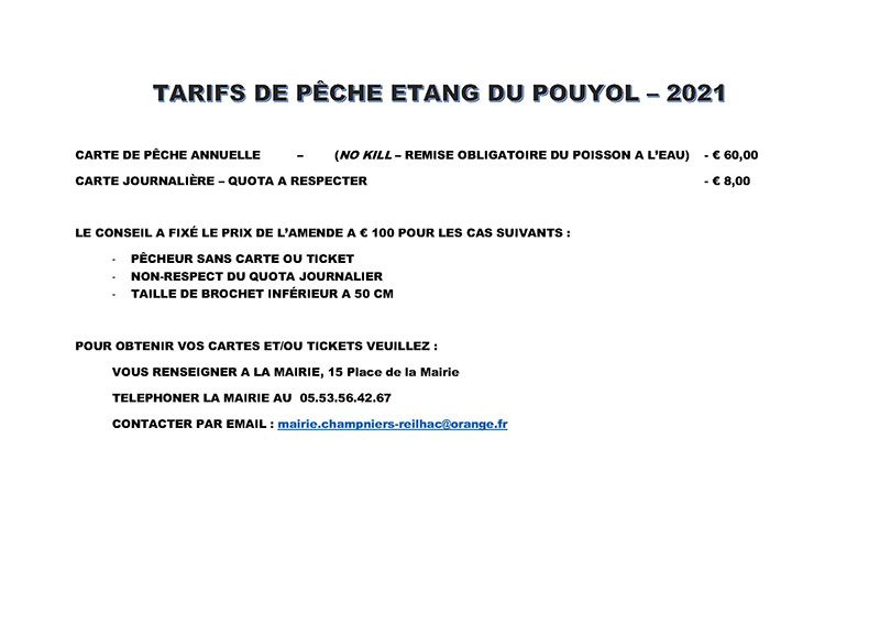 Bienvenue sur le site dédié à la pêche sur nôtre étang du Pouyol. Nous vous souhaitons de passer un ou plusieurs jours de merveilles sur les côtes de nôtre étang.